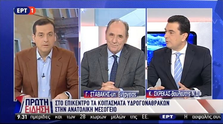 Σχετικά με την αξιοποίηση των εγχώριων κοιτασμάτων υδρογονανθράκων, ο κ. Σκρέκας επέκρινε την κυβέρνηση ΣΥΡΙΖΑ για μεγάλες καθυστερήσεις στις σχετικές διαδικασίες, σε αντίθεση για παράδειγμα με ότι συμβαίνει στην Κύπρο. Όπως σημείωσε, η πρώτη σοβαρή προσπάθεια για έρευνα και εκμετάλλευση πιθανών κοιτασμάτων πετρελαίου και φυσικού αερίου ξεκίνησε το 2012 από την κυβέρνηση του κ. Σαμαρά και μέσα σε δύο χρόνια σημειώθηκε ραγδαία πρόοδος, η οποία ανακόπηκε το 2015 μετά την ανάληψη της διακυβέρνησης της χώρας από τον ΣΥΡΙΖΑ. «Είναι αδιανόητο και κατά την άποψη μου είναι και ντροπή, η Ελλάδα να εδράζεται πάνω σε ένα πιθανό θησαυρό ορυκτού πλούτου και από την άλλη να απλώνει το χέρι σαν επαίτης στις διεθνείς αγορές ή οι Έλληνες να φτωχοποιούνται» είπε χαρακτηριστικά.