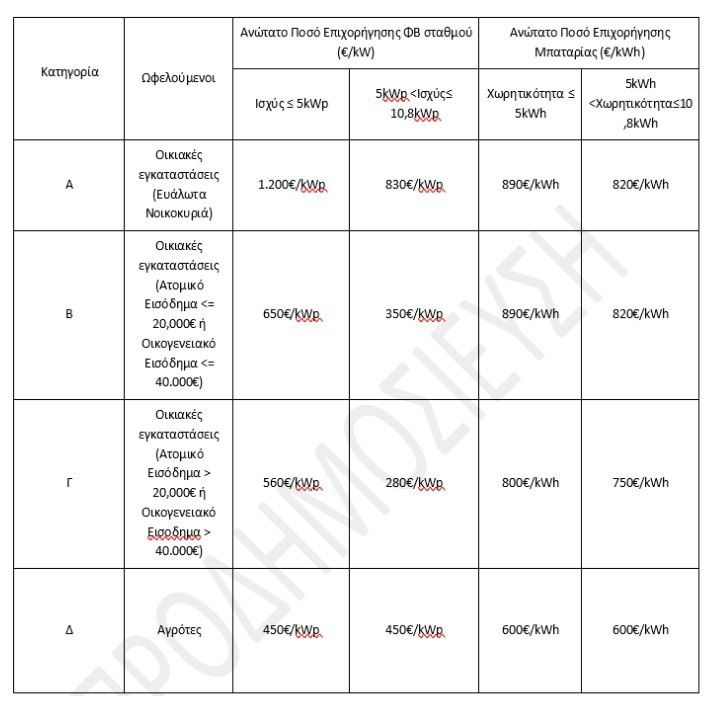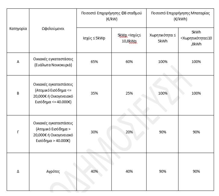 Δικαιούχοι του προγράμματος είναι νοικοκυριά και αγρότες που θα μπορούν να εγκαταστήσουν το δικό τους μικρό φωτοβολταϊκό, σε συνδυασμό με σύστημα αποθήκευσης (μπαταρία).