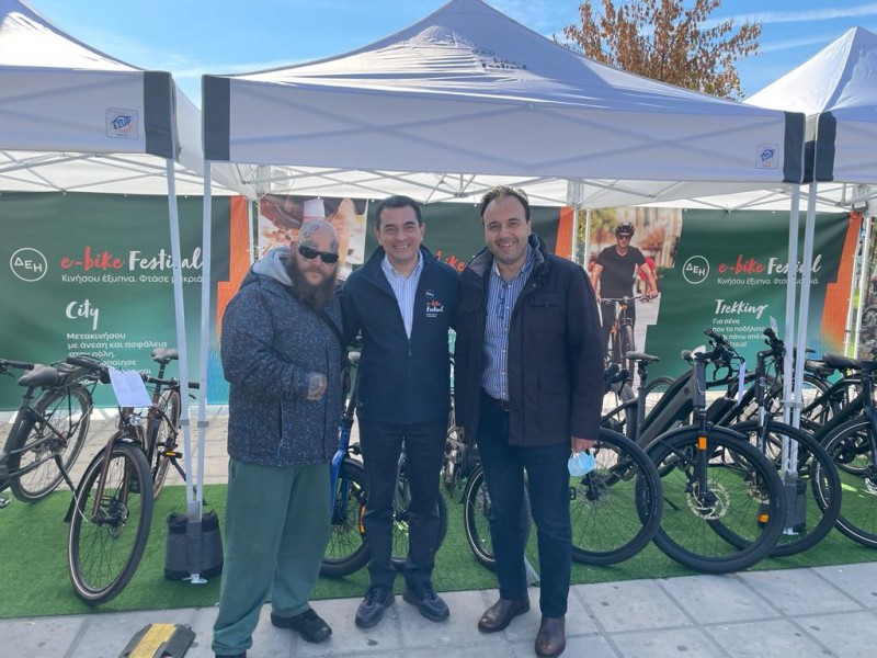 Ο Υπουργός Περιβάλλοντος και Ενέργειας, Κώστας Σκρέκας, επισκέφτηκε το ΔΕΗ e-bike Festival, το πρώτο φεστιβάλ στην Ελλάδα για το ηλεκτρικό ποδήλατο που ξεκινάει από τα Τρίκαλα.