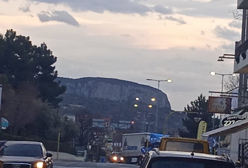 Ο βράχος της Θεόπετρας από την πόλη της Καλαμπάκας.