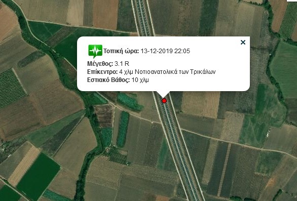 Σεισμική δόνηση μεγέθους 3.1 της κλίμακα Ρίχτερ κούνησε την περιοχή των Τρικάλων το βράδυ της Παρασκευής.