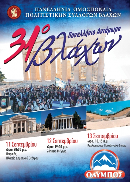 Ξεκινούν οι εκδηλώσεις του 31ου Πανελλήνιου Ανταμώματος Βλάχων με την παρουσία 1000 χορευτών στις 11,12,13 Σεπτεμβρίου στην Αθήνα