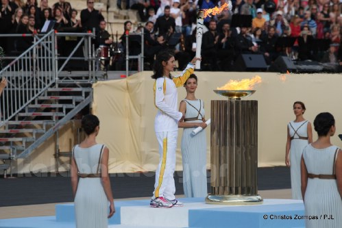Την διοργανώτρια πόλη εκπροσώπησε ο πρόεδρος της Οργανωτικής Επιτροπής Κάρλος Νούζμαν, που παρέλαβε το Φως του Ολυμπισμού από τον Πρόεδρο της Ελληνικής Ολυμπιακής Επιτροπής Σπύρο Καπράλο. Προηγήθηκε στο Καλλιμάρμαρο τελετουργικό με την Πρωθιέρεια Κατερίνα Λέχου και τις Ιέρειες, που έχει εμπνευστεί η Χορογράφος Άρτεμις Ιγνατίου υπό τους ήχους της μουσικής του συνθέτη Γιάννη Ψειμάδα.