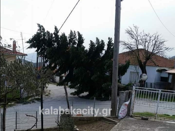 Ειδικότερα, στην Αγναντιά Καλαμπάκας δέντρο και συγκεκριμένα ένα έλατο, δεν άντεξε στην δύναμη του αέρα και ξεριζώθηκε με αποτέλεσμα να πέσει επάνω σε καλώδια της ΔΕΗ τα οποία και το συγκρατούν.