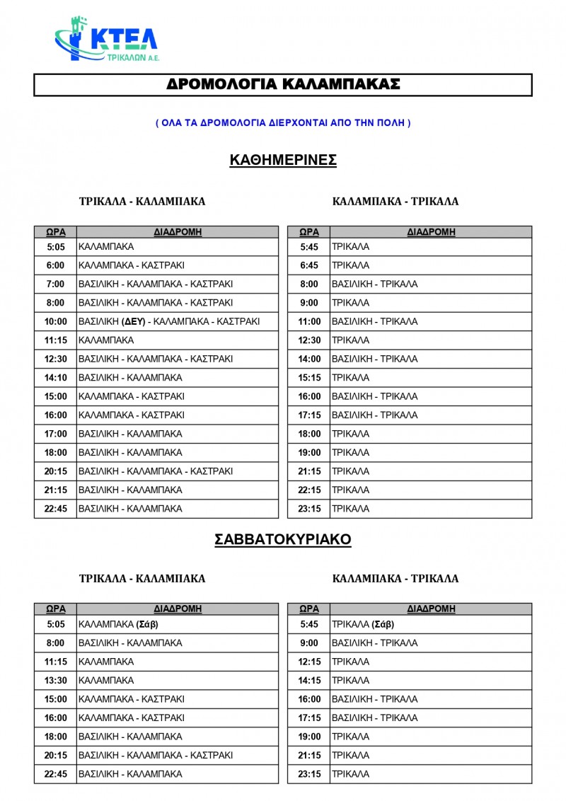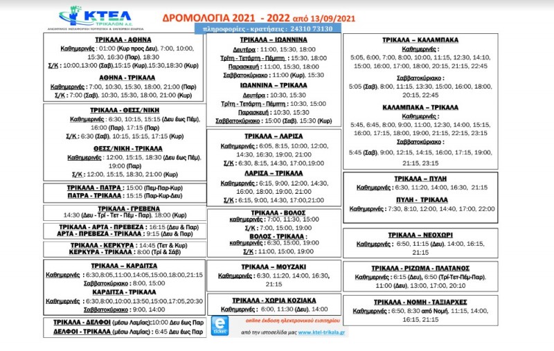Από το ΚΤΕΛ Τρικάλων ανακοινώνεται πως