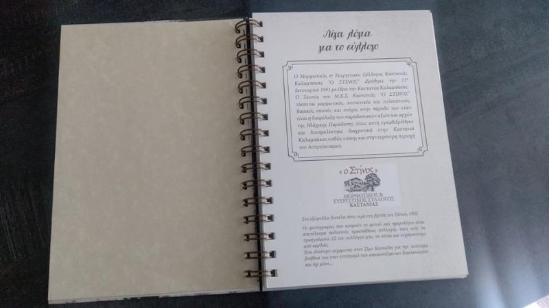 Σας καλούμε λοιπόν όλους να στηρίξετε το Σύλλογο μας και το έργο μας με το παρόν Ημερολόγιο/Ατζέντα, μεσα στο οποίο θα βρείτε όμορφες προπολεμικες φωτογραφίες και ενδιαφέρουσες πληροφορίες για την Καστανιά μας..