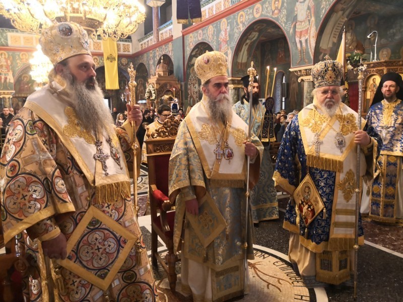 Στην πανηγυρική Θεία Λειτουργία που τελέσθηκε στον ιερό μητροπολιτικό ναό του Αγίου Νικολάου, μετείχαν ο Μητροπολίτης Σταγών κ. Θεόκλητος, ο Μητροπολίτης Άρτης κ. Καλλίνικος ο οποίος προεξήρχε της ιερής ακολουθίας και ο οικείος Μητροπολίτης Καισαριανής κ. Δανιήλ.
