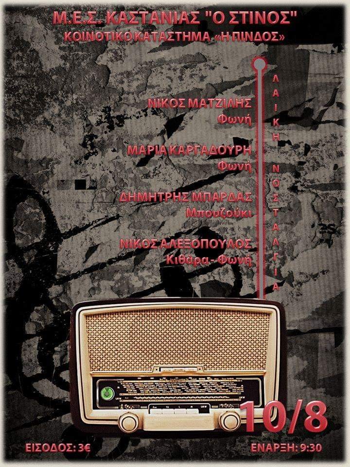 Λαϊκή βραδιά του Μ.Ε.Σ Καστανιάς Ανακοινώσεις Από admin Δημοσίευση Αυγ 8, 2019 -18:37 0 714 Κοινοποίηση FacebookTwitterΗλεκτρονικό ΤαχυδρομείοViber Σας περιμένουμε το Σάββατο 10 Αυγούστου και ώρα 9.30μ.μ στο κοινοτικό κατάστημα “Πίνδος” του Χρήστου Παπαπούλιου στην Καστανιά να νοσταλγήσουμε και να σιγοτραγουδήσουμε όλοι μαζί παλιά αγαπημένα λαϊκά τραγούδια! Είσοδος 3 ευρώ Εκ του Δ.Σ. Μορφωτικός Ευεργετικός Σύλλογος Καστανιάς "Ο ΣΤΙΝΟΣ" 0 714 Κοινοποίηση