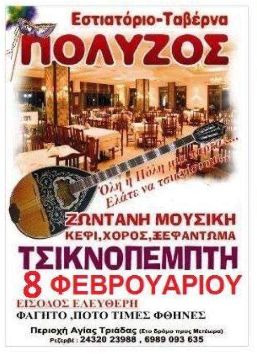 Λαικό Ξεφάντωμα την Τσικνοπέμπτη στο Εστιατόριο “ΠΟΛΥΖΟΣ”.