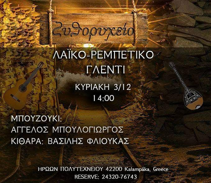 Την Κυριακή 3 Δεκεμβρίου στην μπυραρία «ΖΥΘΟΡΥΧΕΙΟ» σας ετοιμάζουμε ένα ακόμη λαΐκορεμπέτικο live.