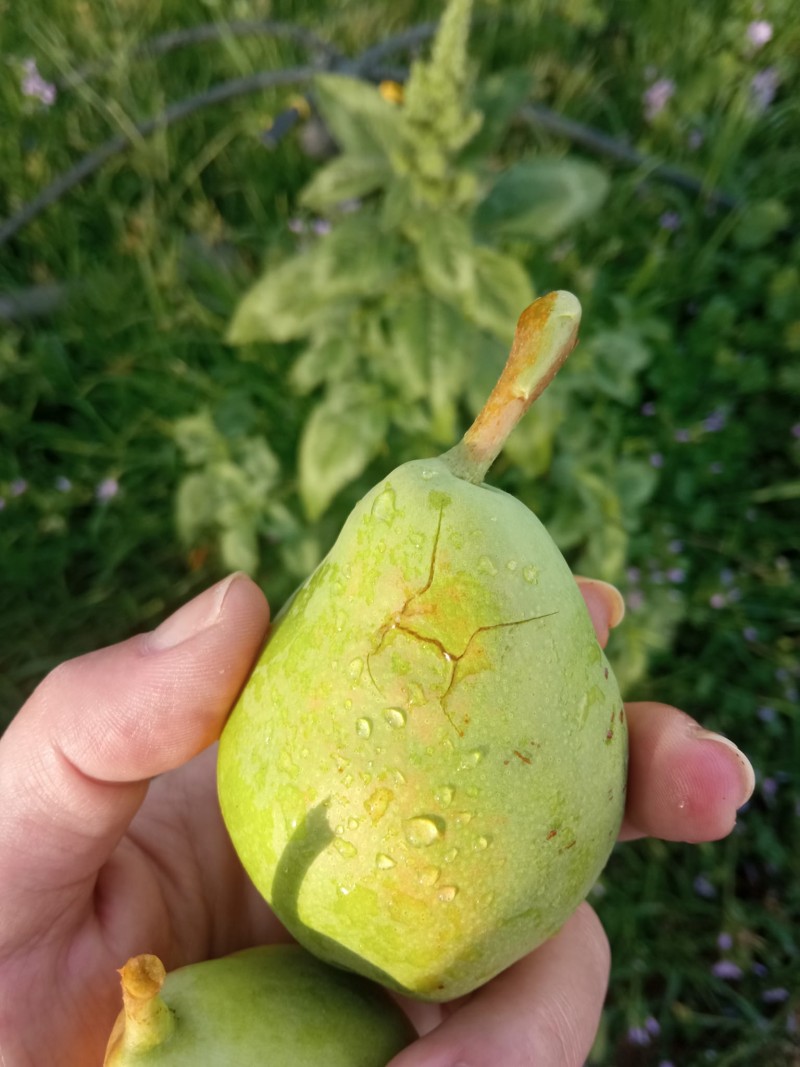 Όπως θα δείτε στις παρακάτω φωτογραφίες το μέγεθος του χαλαζιού ήταν τέτοιο που “τρύπησε” τα αχλάδια προκαλώντας ανεπανόρθωτη ζημιά στον καρπό.