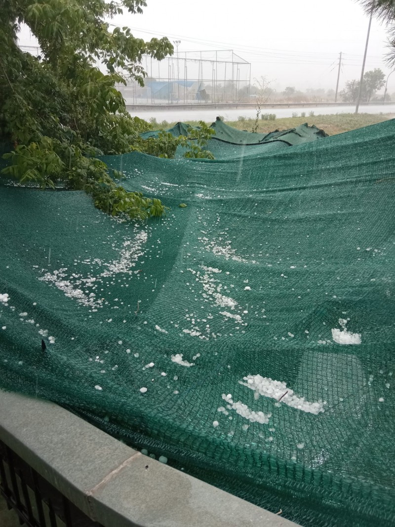 Βερύκοκα που μόλις ξεκίνησε η συγκομιδή, αχλάδια, ροδάκινα και νεκατρίνια υπέστησαν καταστροφές, από το χαλάζι που “ήταν σαν καρύδι” σύμφωνα με τον παραγωγό και αγροτοσυνδικαλιστή Φάνη Τραγάκη.
