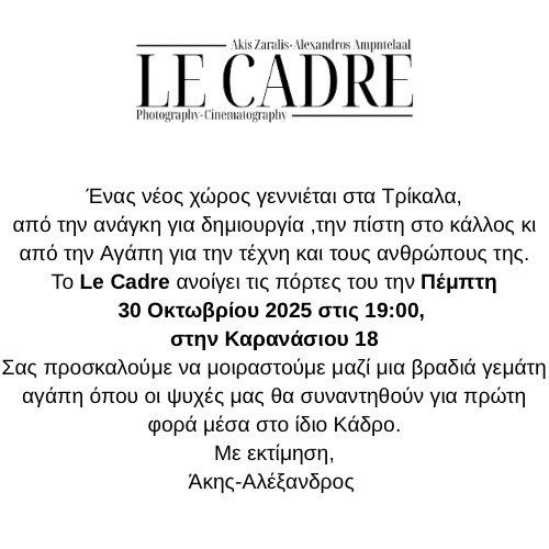 Το Le Cadre ανοίγει τις πόρτες του την Πέμπτη 30 Οκτωβρίου 2025 στις 19:00, στην Καρανάσιου 18.