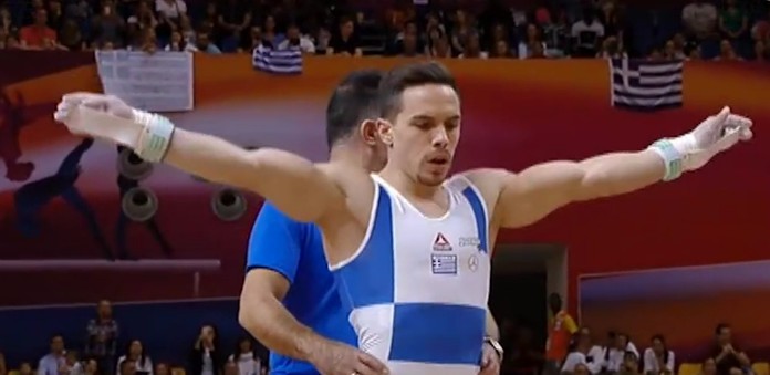 Ο Έλληνας πρωταθλητής αγωνίστηκε πρώτος στον τελικό των κρίκων και βαθμολογήθηκε με 15.366 πόντους.