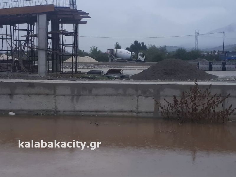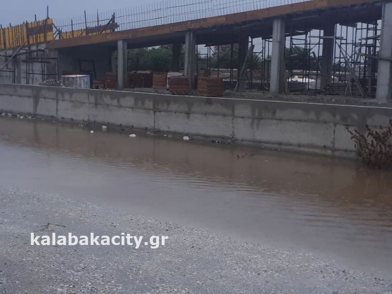 « Λίμνη » πέριξ του υπό κατασκευή του πάρκου στην Καλαμπάκα – Η βροχόπτωση ανέδειξε πρόβλημα