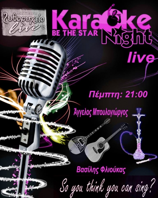 Το μικρόφωνο σας περιμένει!!!!!!!!!!!!!!!! και θα σας συνοδέυουν ο Άγγελος Μπουλογιώργος και ο Βασίλης Φλιούκας !!!!