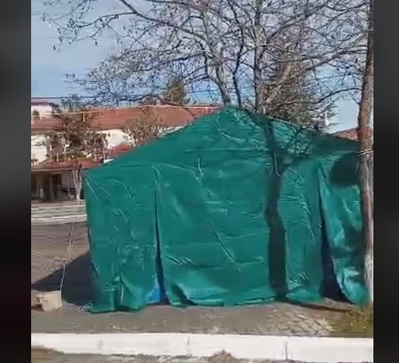 Η χθεσινή σεισμική δόνηση μεγάλωσε τις ρωγμές που ήδη υπήρχαν σε οικίες και προκειμένου να υπάρχει ασφάλεια στους κατοίκους, στήθηκαν σκηνές στην πλατεία και διανυκτέρευσαν μέσα σ’ αυτές.