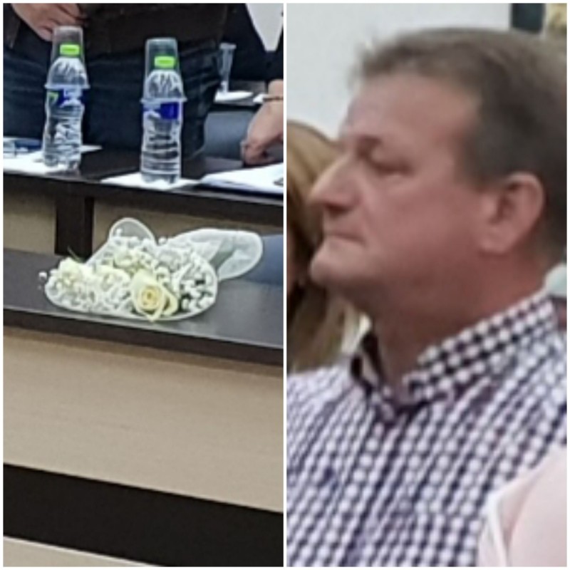 Δεν ξέχασε τον φιλο του Γιώργο Δήμου ο Δημοτικός Σύμβουλος κ. Άλκης Αναγνωστόπουλος και σήμερα στην συνεδρίαση του Δημοτικού Συμβουλίου άφησε στην θέση που καθόταν ο Γιώργος… ενα μπουκέτο λευκά τριαντάφυλλα κάνοντας και μια μικρή αναφορά γεμάτος συγκίνηση…