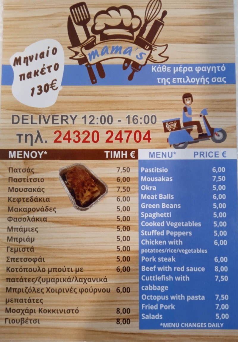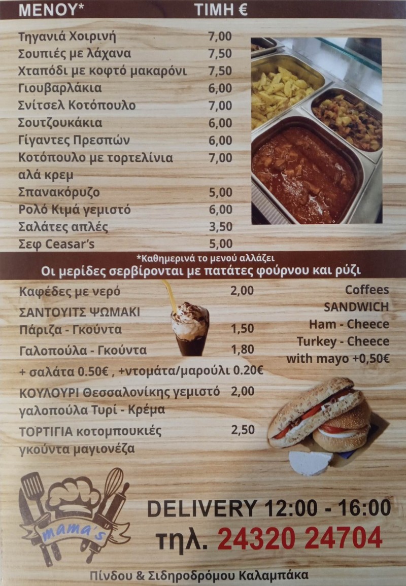 Μαγειρευτά φαγητά και τον καφέ σας μπορείτε να απολαύσετε στο νέο κατάστημα της Καλαμπάκας “mama’s” που βρίσκεται στην οδό Πίνδου και Σιδηροδρόμου.