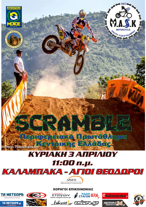 Το Αθλητικό Σωματείο Μ.Α.Σ.Κ. με αριθμό αναγνώρισης ΦΤ61 ,μετά από έγκριση της Αθλητικής ΜΟΤΟΕ, διοργανώνει τον 1ο αγώνα Scramble Κεντρικής Ελλάδος 2016, ο οποίος θα διεξαχθεί την Κυριακή 3 Απριλίου 2016 στην Καλαμπάκα, περιοχή Άγιοι Θεόδωροι.