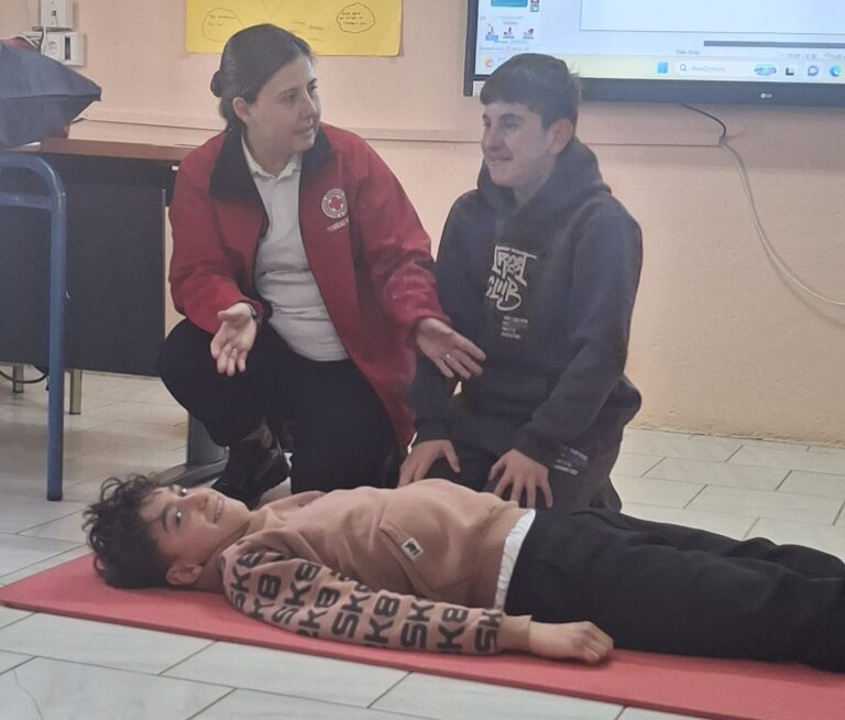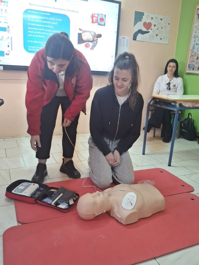 Το Γυμνάσιο Οξύνειας φιλοξένησε την Τρίτη 10 Μαρτίου το κλιμάκιο του Ελληνικού Ερυθρού Σταυρού (Τμήμα Τρικάλων) στο πλαίσιο επιμορφωτικής δράσης Πρώτων Βοηθειών. Η κ. Ε. Γιοβανοπούλου έδειξε στους μαθητές/τριες μας, με τρόπο βιωματικό και άμεσο, πώς να αντιδρούν σε επείγουσες καταστάσεις: από την αντιμετώπιση μιας λιποθυμίας και πνιγμού μέχρι τη χρήση απινιδωτή και την παροχή ΚΑΡΠΑ. Η δράση αυτή στόχευε στην ενίσχυση της κοινωνικής ευθύνης και στην παροχή βασικών γνώσεων υγείας στους εφήβους μας.