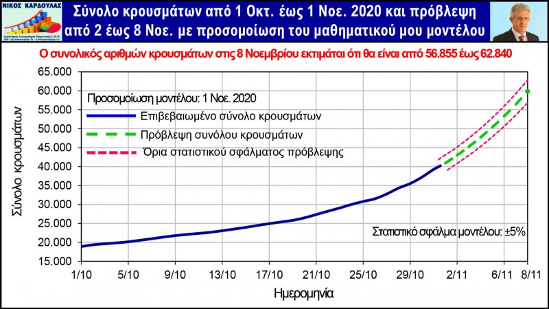 Μαθηματικό μοντέλο Νίκου Καρδούλα: Πρόβλεψη κρουσμάτων κορωνοϊού τρέχουσας εβδομάδας