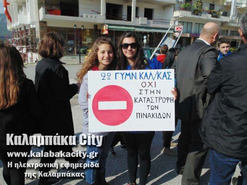 Οι μαθητές με τους εκπαιδευτικούς που τους συνόδευαν και ανθρώπους του δήμου Καλαμπάκας καθάρισαν πινακίδες που είχαν επάνω τους μπογιές και αυτοκόλλητα.