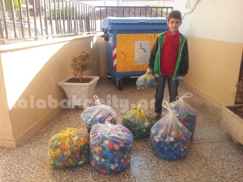 Την δική του “ομάδα” που πρόσφερε καπάκια ευχαριστεί ο μικρός μαθητής του σχολείου Κωνσταντίνος Παπακώστας