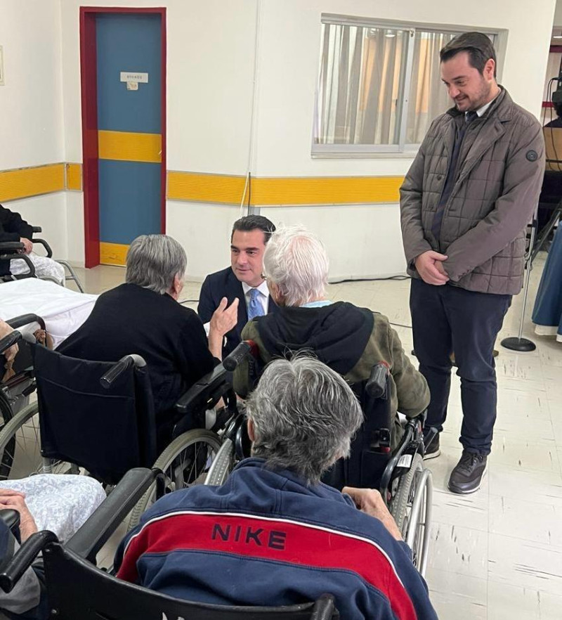 Μαζί με το προσωπικό και τους φιλοξενούμενους του Θεραπευτηρίου Χρονίων Παθήσεων ο Κώστας Σκρέκας στην κοπή της Πρωτοχρονιάτικης πίτας