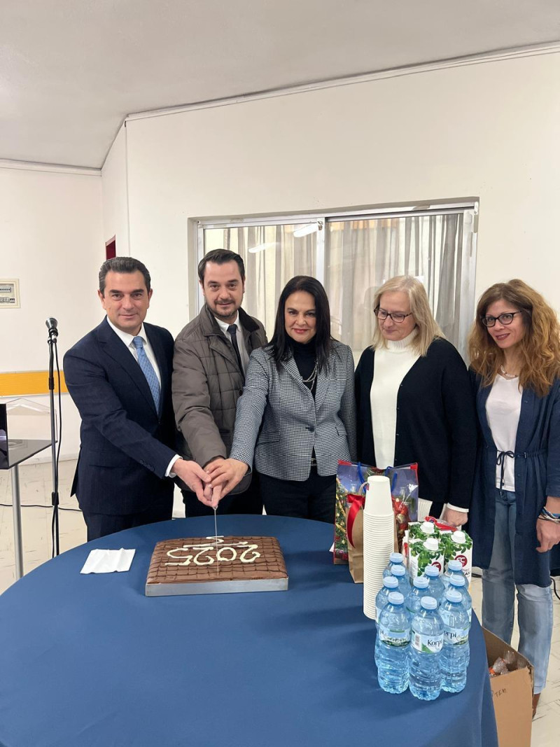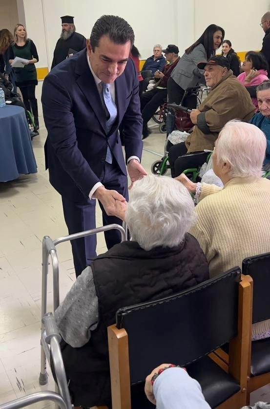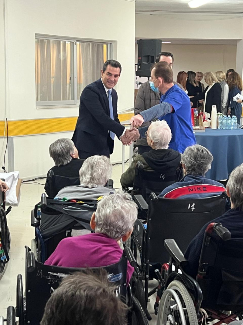 Μαζί με το προσωπικό και τους φιλοξενούμενους του Θεραπευτηρίου Χρονίων Παθήσεων ο Κώστας Σκρέκας στην κοπή της Πρωτοχρονιάτικης πίτας