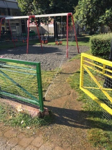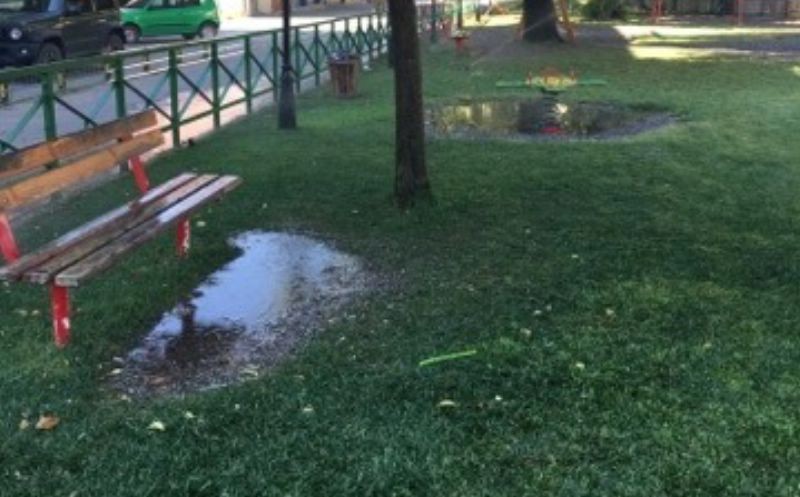 Αντιμέτωπες με το νερό… είναι κάθε πρωί οι μητέρες και τα παιδιά τους που αποφασίζουν να πάνε στην παιδική χαρά της Πλατείας Δημουλά.