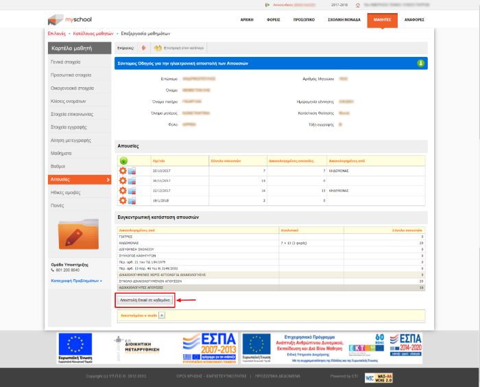 Το υπουργείο Παιδείας και το Πληροφοριακό Σύστημα myschool, έχουν ετοιμάσει την «πλατφόρμα» και προχωρά από σήμερα στην υλοποίηση της ηλεκτρονικής αποστολής των ειδοποιητηρίων απουσιών των μαθητών στους γονείς/κηδεμόνες αυτών.