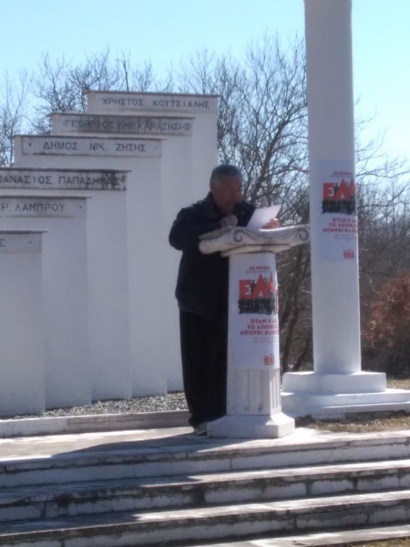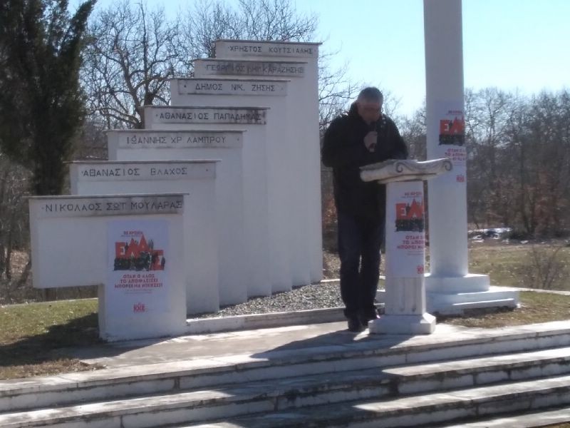 Απέναντι στους αγωνιστές που πολέμησαν και θυσιάστηκαν κάτω από τη σημαία του ΕΛΑΣ που οδηγήθηκαν στις μάχες με τον Σαράφη, τον Άρη και τους ατρόμητους καπεταναίους γράφοντας φωτεινές νίκες του λαού, είναι πατριωτικό και διεθνιστικό μας καθήκον να μην αφήσουμε να χρησιμοποιούνται ελληνικά εδάφη, υποδομές και μέσα, ως στρατιωτικά – πολεμικά προγεφυρώματα οποιουδήποτε. Μακριά από κάθε εμπλοκή της χώρας σε ξένες επεμβάσεις κανένας στρατιώτης ή αξιωματικός έξω από τα σύνορά μας.