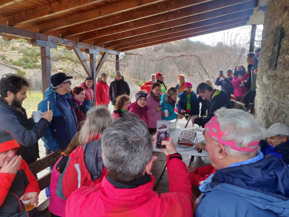 Φτάνοντας στο καταφύγιο της Ο.Λ.Ε., ακολούθησε η κοπή της πρωτοχρονιάτικης πίτας, ενώ τα μέλη του συλλόγου της Εορδαίας, μας φιλοξένησαν θερμά και μας προσέφεραν πλούσια εδέσματα που είχαν ετοιμάσει. Η ημέρα ολοκληρώθηκε με αναμνηστικές φωτογραφίες, με φόντο το χιονισμένο Σινιάτσικο, και στη συνέχεια πήραμε τον δρόμο της επιστροφής προς το χωριό Βλάστη.