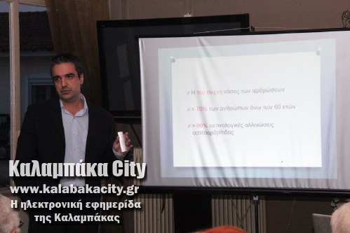 Η εκδήλωση περιελάμβανε ομιλία τον Καλαμπακιώτη Γιατρό, Ορθοπεδικό – Χειρουργό κ. Αλέξανδρο Τσαρούχα που έδωσε χρήσιμες πληροφορίες σε όλους τους παρευρισκόμενους που γέμισαν ασφυκτικά την αίθουσα του καφενείου του κ. Μπαλογιάννη.