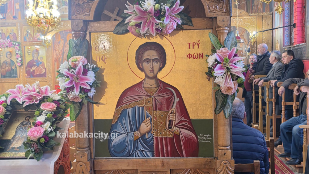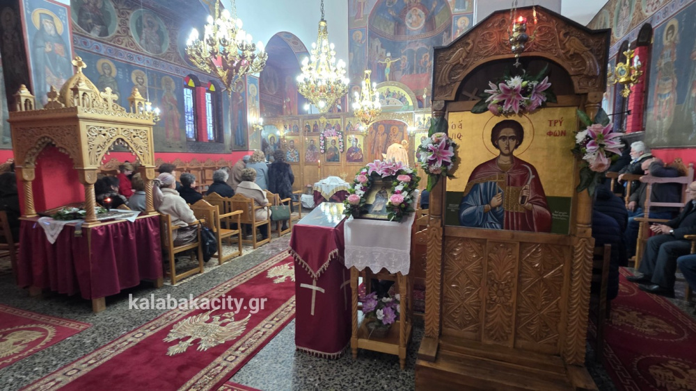 Τελέστηκε σήμερα το απόγευμα ο Μέγας Εσπερινός στον Ιερό Ναό Αγίου Τρύφωνος, στα Αμπέλια Καλαμπάκας.