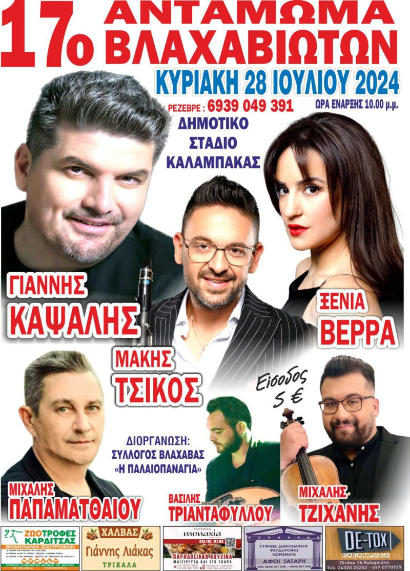 Την Κυριακή 28 Ιουλίου θα πραγματοποιηθεί το 17ο Αντάμωμα Βλαχαβιωτών από τον Πολιτιστικό Σύλλογο Βλαχάβας “Παλαιοπαναγιά” στο Δημοτικό Στάδιο Καλαμπάκας.