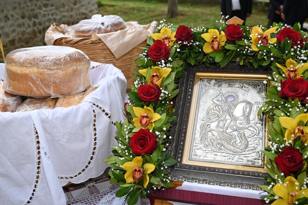 Ο ιστορικός ναός γέμισε από κατοίκους της περιοχής και προσκυνητές που έσπευσαν να τιμήσουν τον Άγιο Γεώργιο, συμμετέχοντας με κατάνυξη και ευλάβεια στη Θεία Λειτουργία.