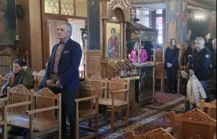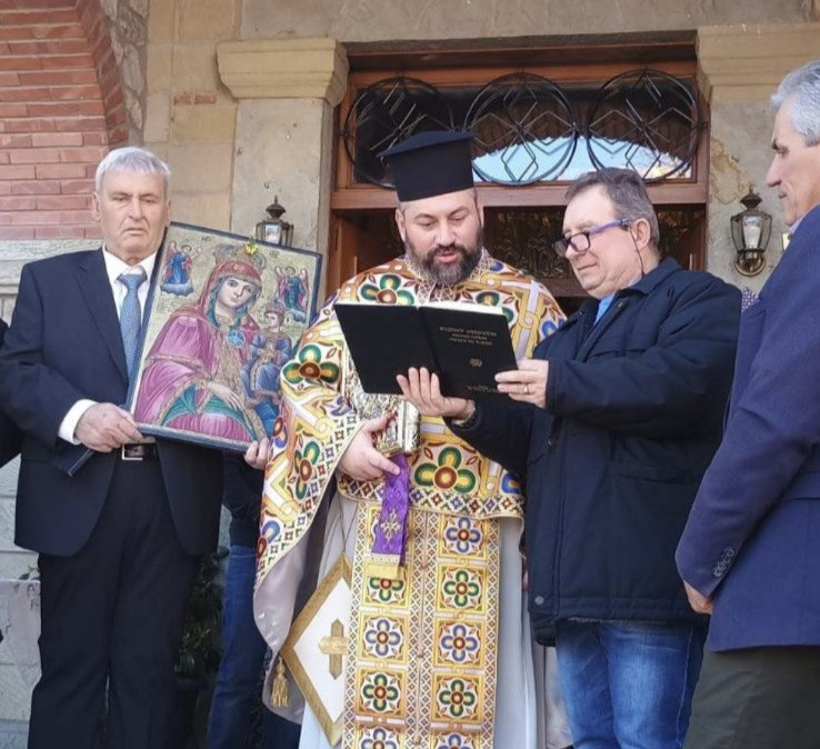 Στο τέλος, στα προπύλαια του ιερού ναού διαβάστηκε από τον εφημέριο του ναού π. Ηρακλή Φίλιο το Συνοδικό της Ορθοδοξίας.