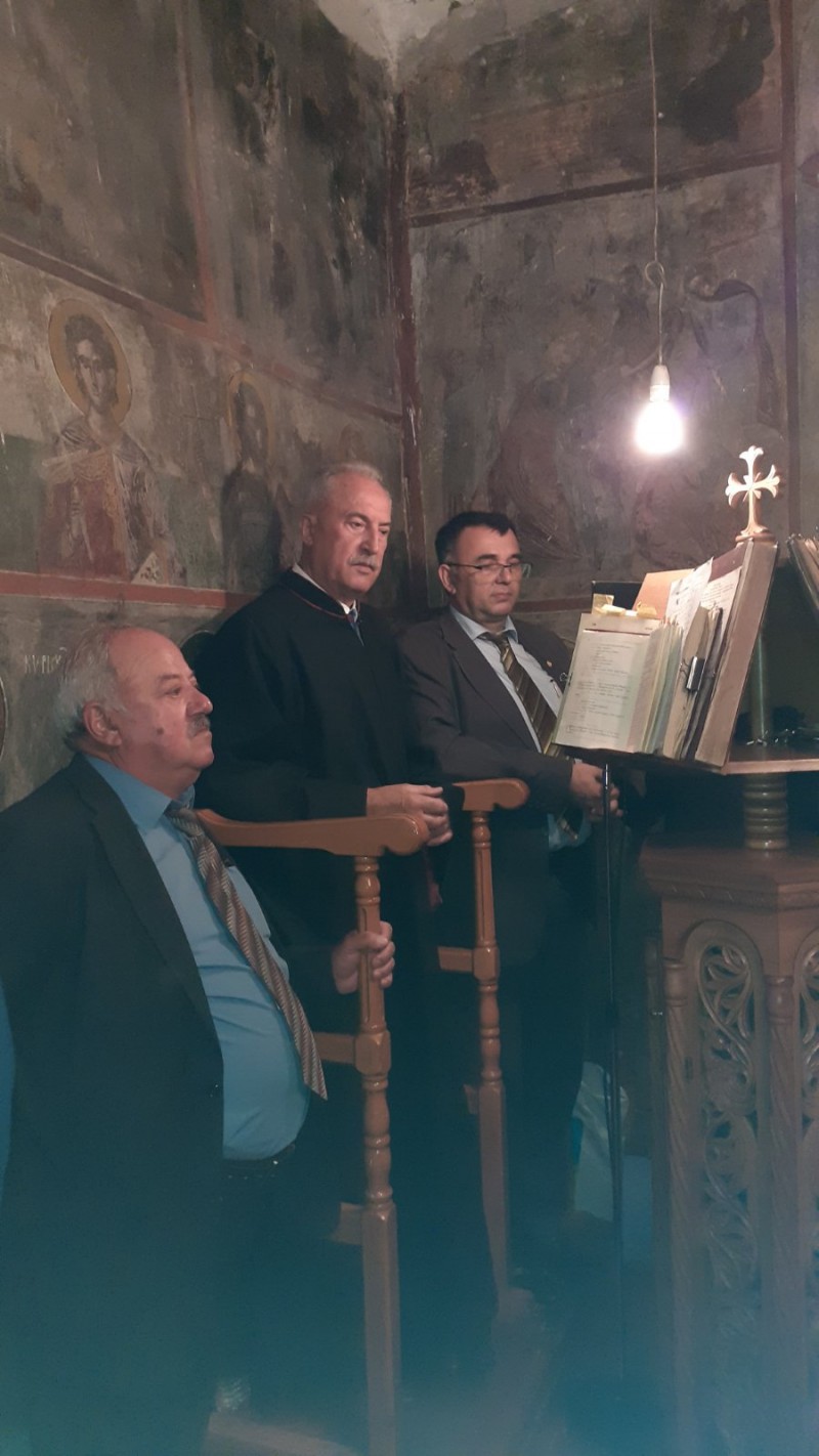 Τους ιερούς ύμνους απέδωσαν ο πρόεδρος του Σωματείου ιεροψαλτών Τρικάλων κ Αθανάσιος Γ. Δημητρίου ο Πρωτοψάλτης του ιερού ναού Αθανάσιος Τζέλης, οι ιεροψάλτες Χολέβας Κλεομένης και Δήμου Κλεομένης και η νεοσύστατη εκκλησιαστική χορωδία γυναικών της ενορίας του Μεγαλοχωρίου Τρικάλων.