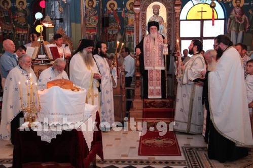 Συγκεκριμένα σήμερα παραμονή της μεγάλης εορτής των Αγίων Κωνσταντίνου και Ελένης στον ομώνυμο Ιερό Ναό της Πόλης μας έγινε παρουσία του Μητροπολίτη Σεραφείμ και ιερέων ο Μέγας Εσπερινός, τον οποίο παρακολούθησε πλήθος κόσμου.