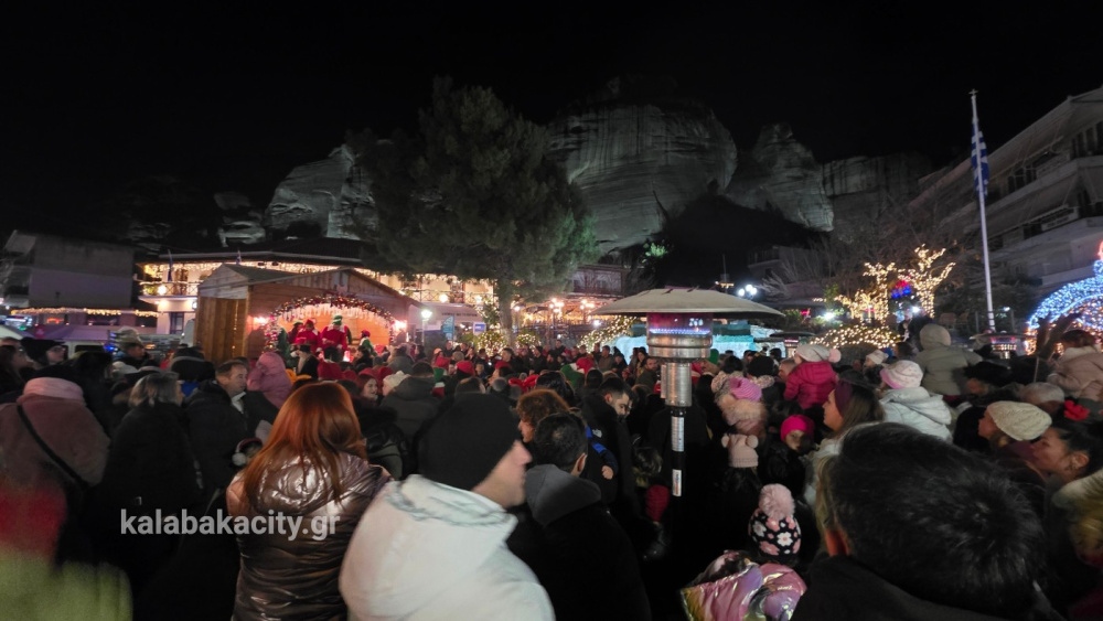 Με μεγάλη επιτυχία πραγματοποιήθηκε η εορταστική εκδήλωση το βράδυ της Τετάρτης με τον Άη Βασίλη να κάνει μια ξεχωριστή στάση στα εντυπωσιακά Μετέωρα, εκεί όπου οι μοναδικοί βράχοι αγγίζουν τον ουρανό και η γη συναντά το άπειρο.
