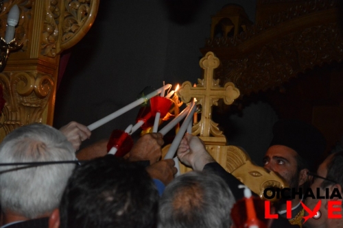 Στην Οιχαλία, το Αναστάσιμο μήνυμα έγινε δεκτό με το Άγιο Φως, που έφθασε νωρίς το βράδυ το Μεγάλου Σαββάτου, λίγη ώρα πριν την Ανάσταση, στον Ιερό Ναό Αγίου Νικολάου.