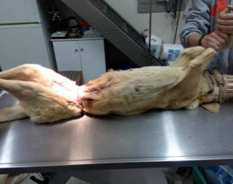Οι φωτογραφίες είναι αδιάψευστος μάρτυρας του βασανιστηρίου που βίωσε για πολύ καιρό το σκυλί αφού το σύρμα είχε παραμορφώσει το κορμί του καθώς κάποιος ή σκόπιμα το παγίδευε για να το βασανίσει ή το ζώο μπλέχτηκε στις θηλιές που βάζουν παράνομα κυνηγοί για να πιάνουν θηράματα ή άλλα άγρια ζώα, τα οποία θέλουν να θανατώσουν.