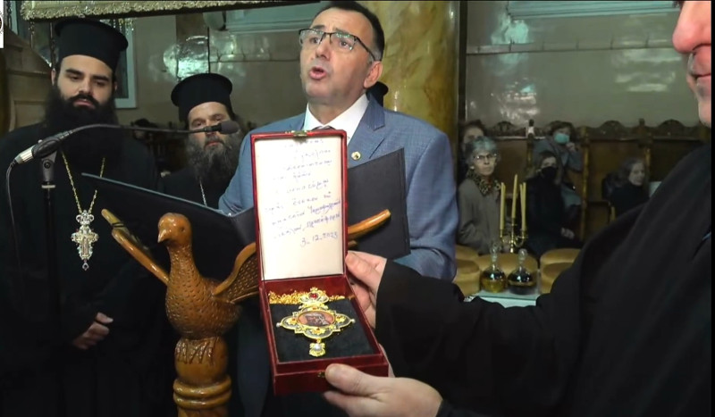 Μετά την απόλυση ο πρόεδρος του Σωματείου κ. Αθανάσιος Γ Δημητρίου αφού ευχαρίστησε τον Σεβασμιώτατο και του ζήτησε να είναι συμπαραστάτης και βοηθός στο έργο τους, του προσέφερε εκ μέρους των ιεροψαλτών ένα εγκόλπιο με τον Άγιο Ιωάννη τον Δαμασκηνό ως ενθύμιο της ημέρας.