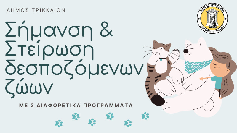 Λύση και τάξη στο μείζον θέμα της σήμανσης (τσιπάρισμα) των δεσποζόμενων ζώων, αλλά και της στείρωσής τους προωθεί ο Δήμος Τρικκαίων. Με δύο χωριστές δράσεις το αμέσως επόμενο διάστημα, υλοποιούνται: