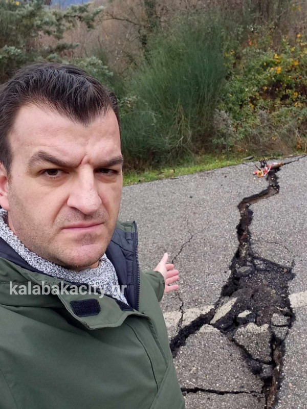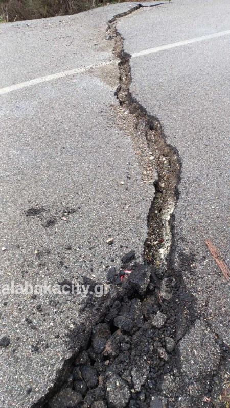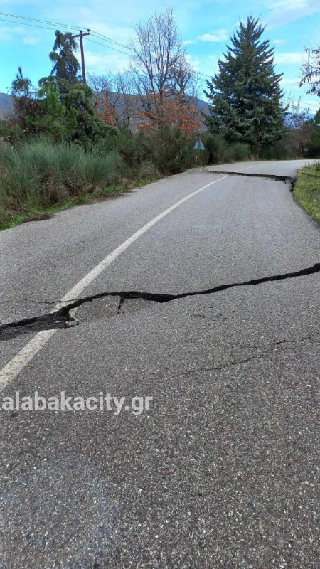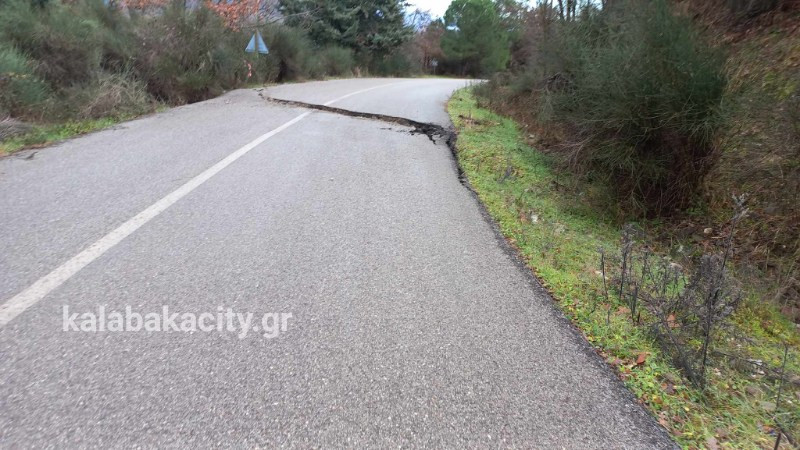 Μεγάλη καθίζηση υπέστη το οδόστρωμα λίγο πριν την Καλομοίρα Καλαμπάκας από την πρόσφατη βροχόπτωση.