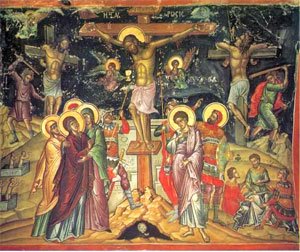 Αφήνει το πνεύμα επί του Σταυρού. Οι δύο ληστές. Μεταμέλεια του ενός, που ζητά από τον Κύριο να τον θυμηθεί στη βασιλεία των Ουρανών.