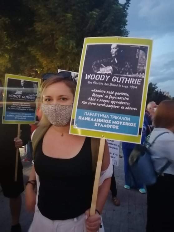 «Τον φασισμό βαθιά κατάλαβε τον. Δε θα πεθάνει μόνος. Τσάκισε τον!»: Την υπόμνηση αυτή μέσα από τους στίχους του Φώντα Λάδη έχουν προτάξει στα πλακάτ τους οι μουσικοί του Παραρτήματος Τρικάλων του Πανελλήνιου Συλλόγου.