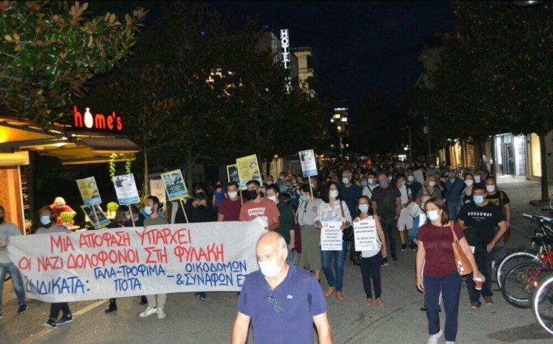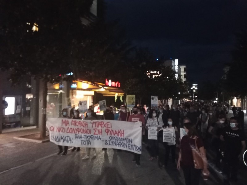 Με συνθήματα όπως: «Ο λαός απαιτεί, οι ναζί στη φυλακή», « τσακίστε τους φασίστες σε κάθε γειτονιά» και «Του Χίτλερ τα εγγόνια, η μπόχα της ιστορίας, είναι τα μαντρόσκυλα της εργοδοσίας» πορεύτηκαν στους κεντρικούς δρόμους της πόλης